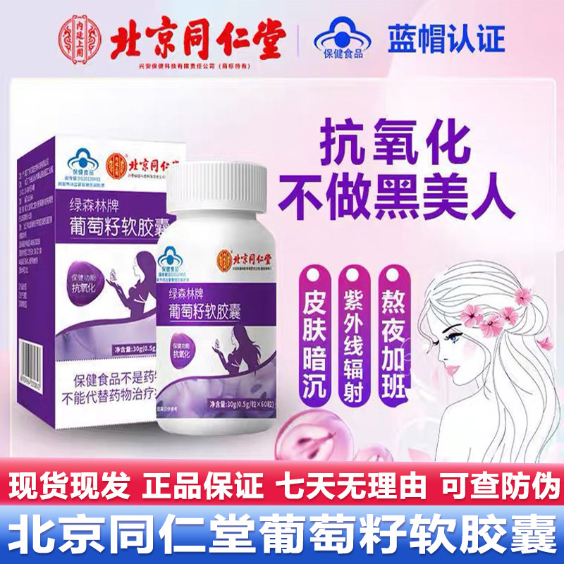 北京同仁堂葡萄籽提取物软胶囊150粒抗氧化 含原花青素旗舰店官网