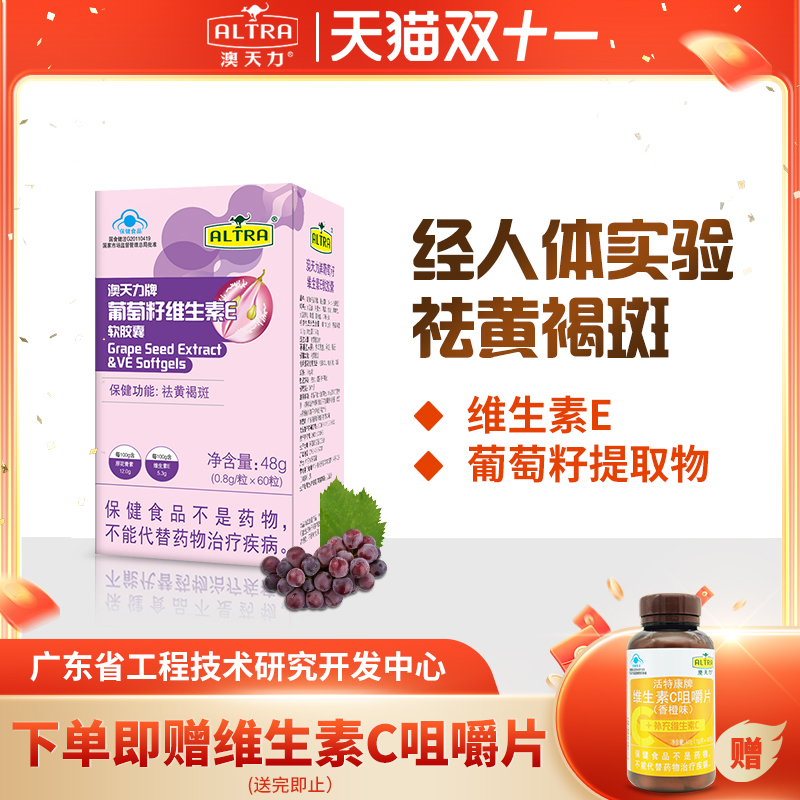 澳天力葡萄籽维生素E软胶囊女性祛黄褐斑原花青素维E葡萄籽提取物