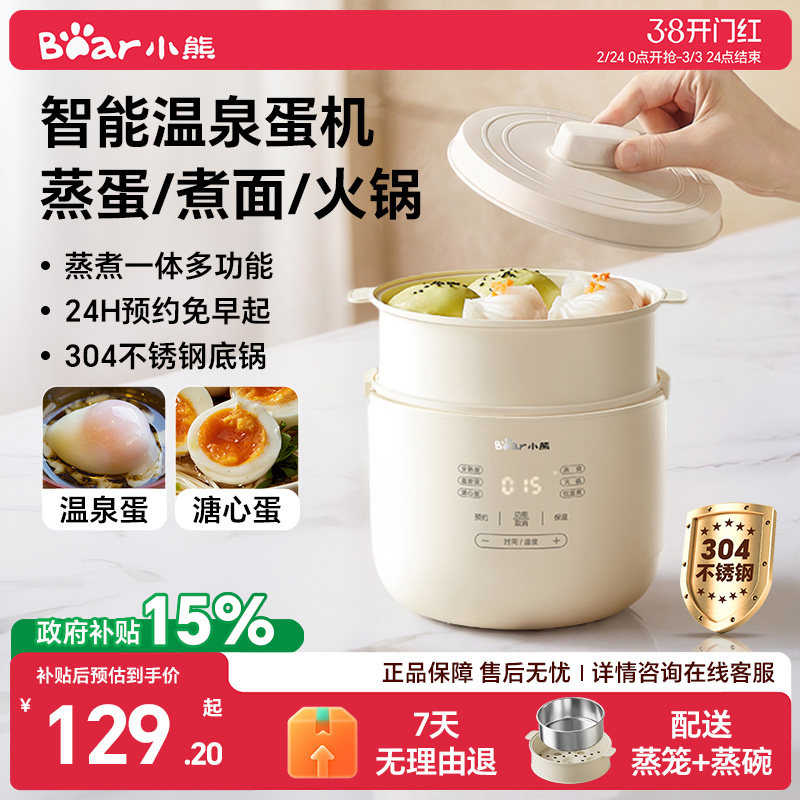 小熊煮蛋器蒸煮一体蒸锅家用小型定时煮鸡蛋神器预约蒸蛋器温泉蛋