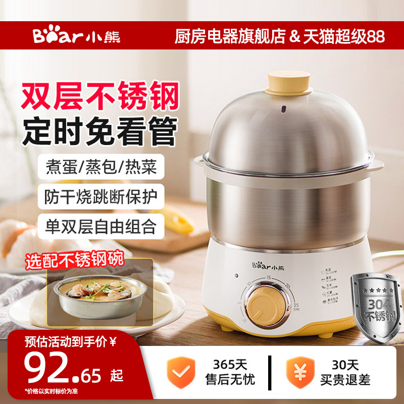 小熊煮蛋器不锈钢家用小型迷你电蒸锅双层自动断电早餐蒸蛋烹饪机