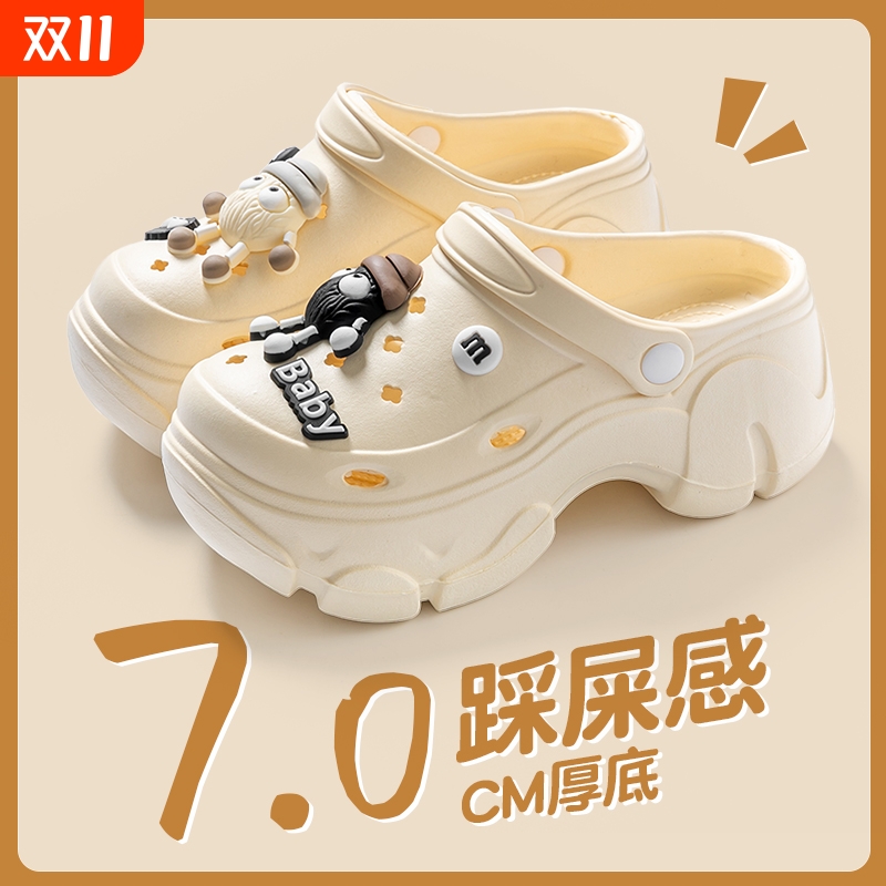煤球洞洞鞋女款夏季2025新款松糕厚底踩屎感凉鞋增高防滑包头拖鞋