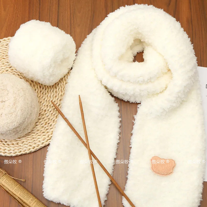 珊瑚绒毛线编织围巾线手工diy自制送女男友白色毛线团毯子材料包