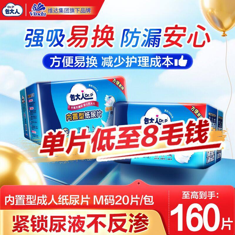 包大人内置成人纸尿片老人专用尿不湿男女尿片实惠隔尿垫20/160片