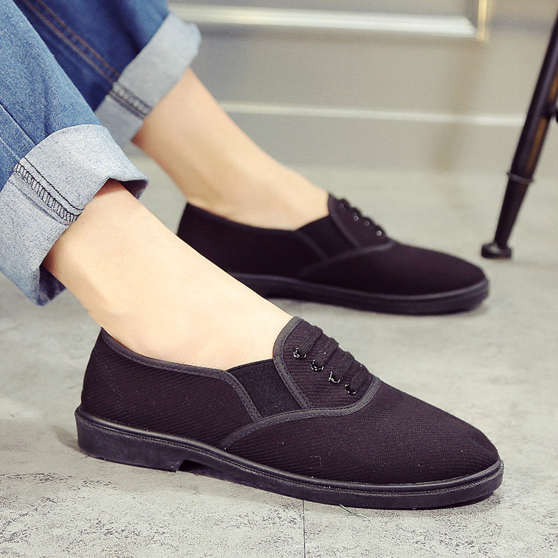 白色劳保鞋男女帆布鞋套脚车间工作鞋布鞋平底一脚蹬懒人工厂白鞋