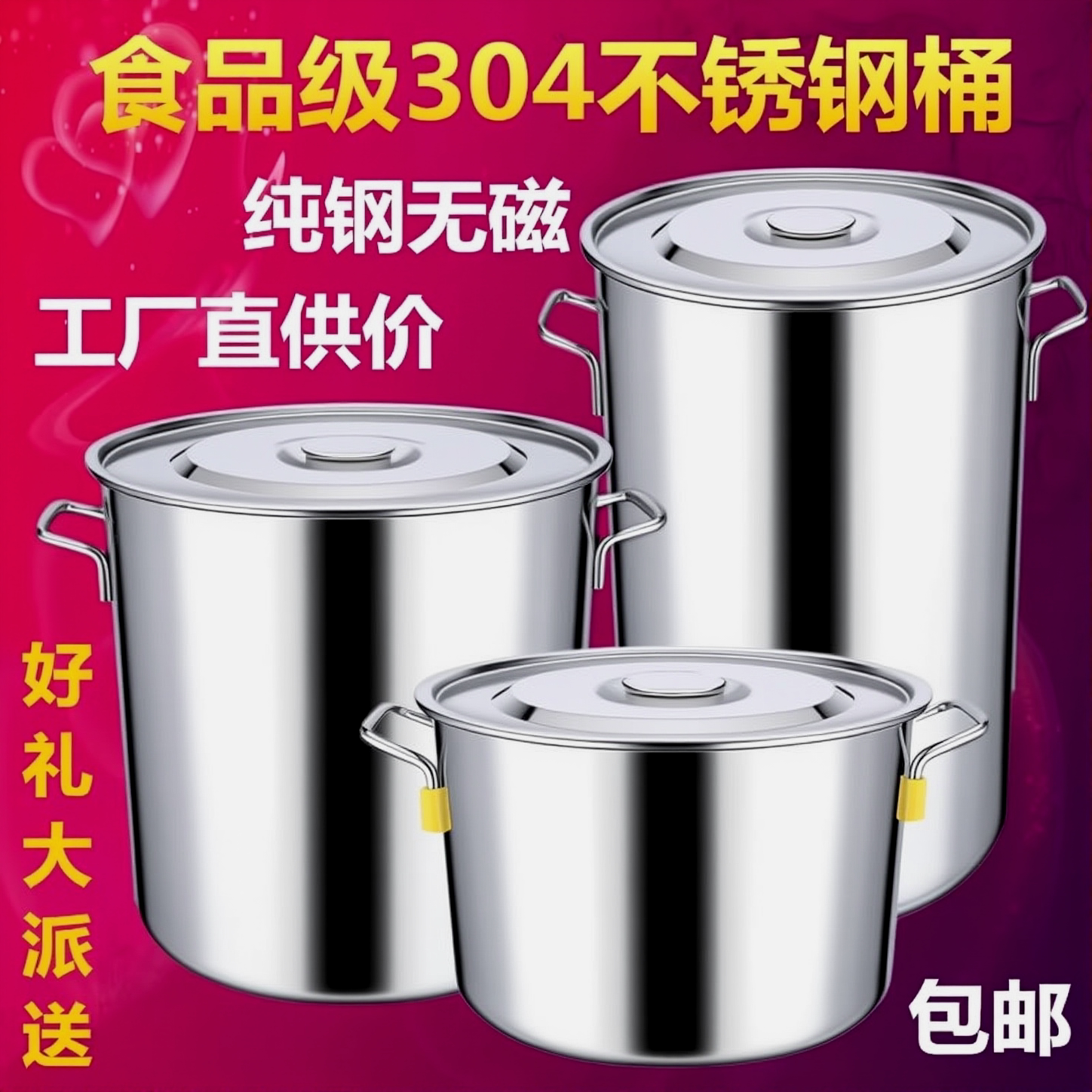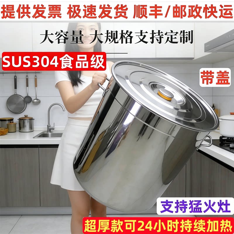 特厚304不锈钢桶圆桶带盖汤锅汤桶家用卤水桶油桶储水桶大容量锅