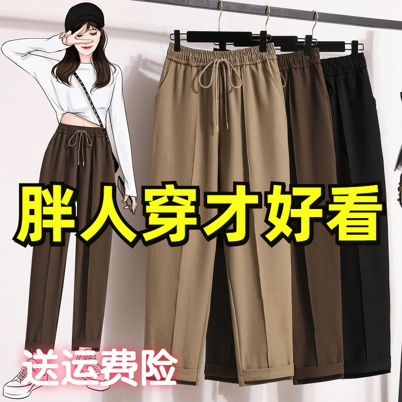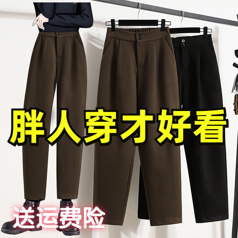 秋冬新款大码宽松遮肉显瘦哈伦裤女韩版高腰梨型身材休闲西装裤子