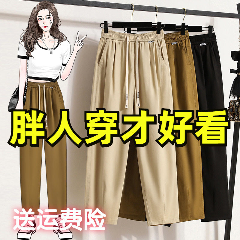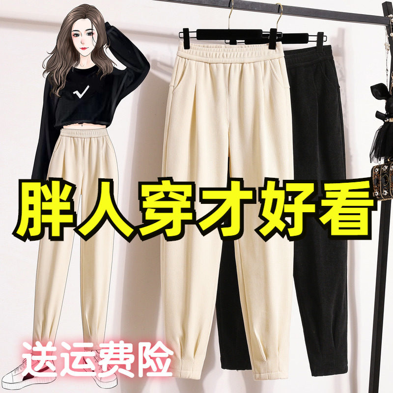 秋冬新款大码松紧腰高腰显瘦哈伦裤女韩版胖mm百搭遮肉宽松休闲裤
