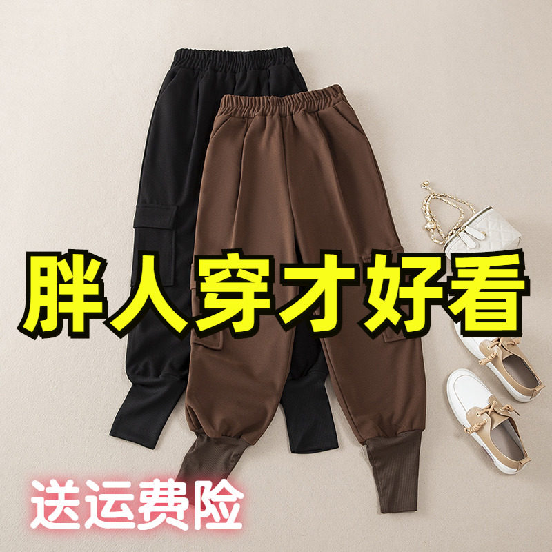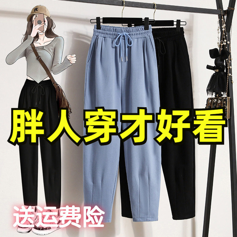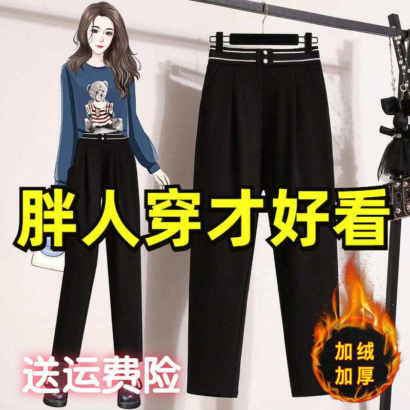 黑色哈伦裤女秋冬新款胖mm超大码显瘦加绒九分裤宽松休闲萝卜长裤