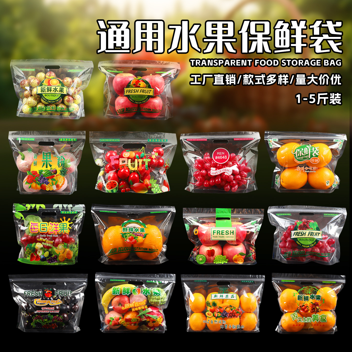 一次性水果保鲜袋葡萄蔬菜透明塑料包装袋自立打孔透气手提自封袋