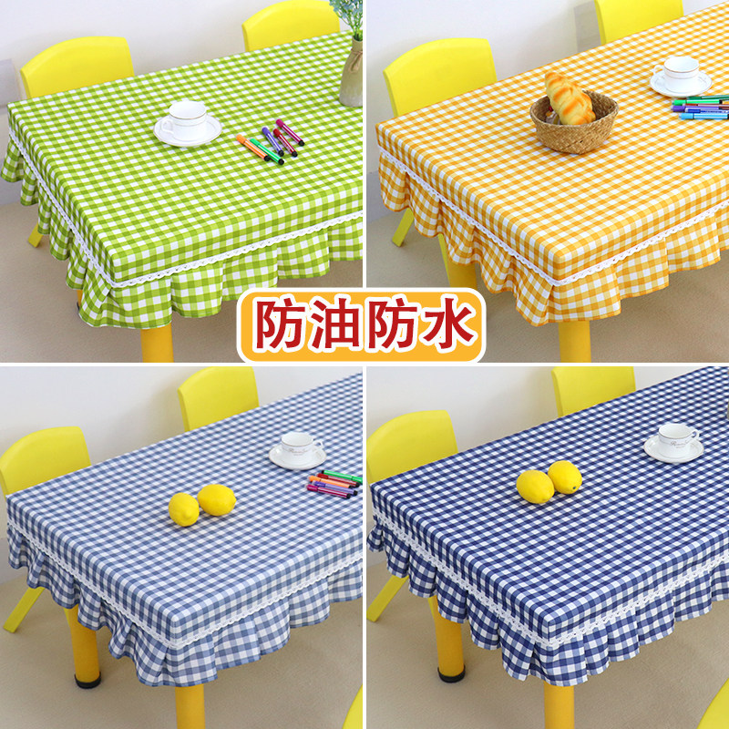 桌布防水防油免洗餐桌布艺茶几罩套幼儿园书桌课桌长方形格子台布