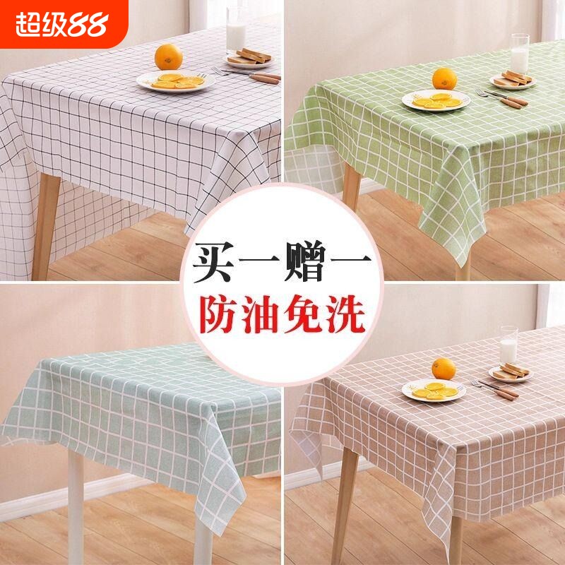 网红简约ins风北欧格子桌布防水免洗餐桌布PEVA台布防油桌垫桌布