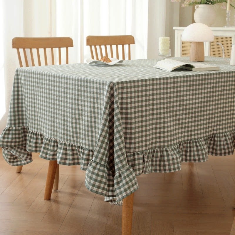 木木家 棉麻浅绿色格子防水布艺桌布简约 餐桌书桌ins学生幼儿园