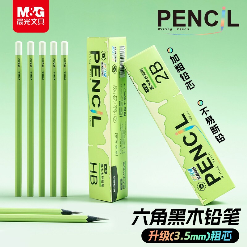 粗芯绿杆黑木晨光铅笔高颜值3.5MM加粗铅芯六角小小学生高端一年级hb安全幼儿园2B儿童无铅毒考试刻字不易断