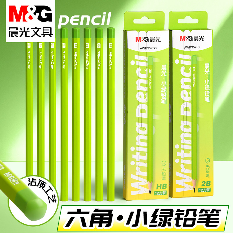 晨光铅笔小学生用2b小绿杆六角铅笔2比考试幼儿园儿童一二年级用练字无铅毒不易断画画素描绘图文具套装写字