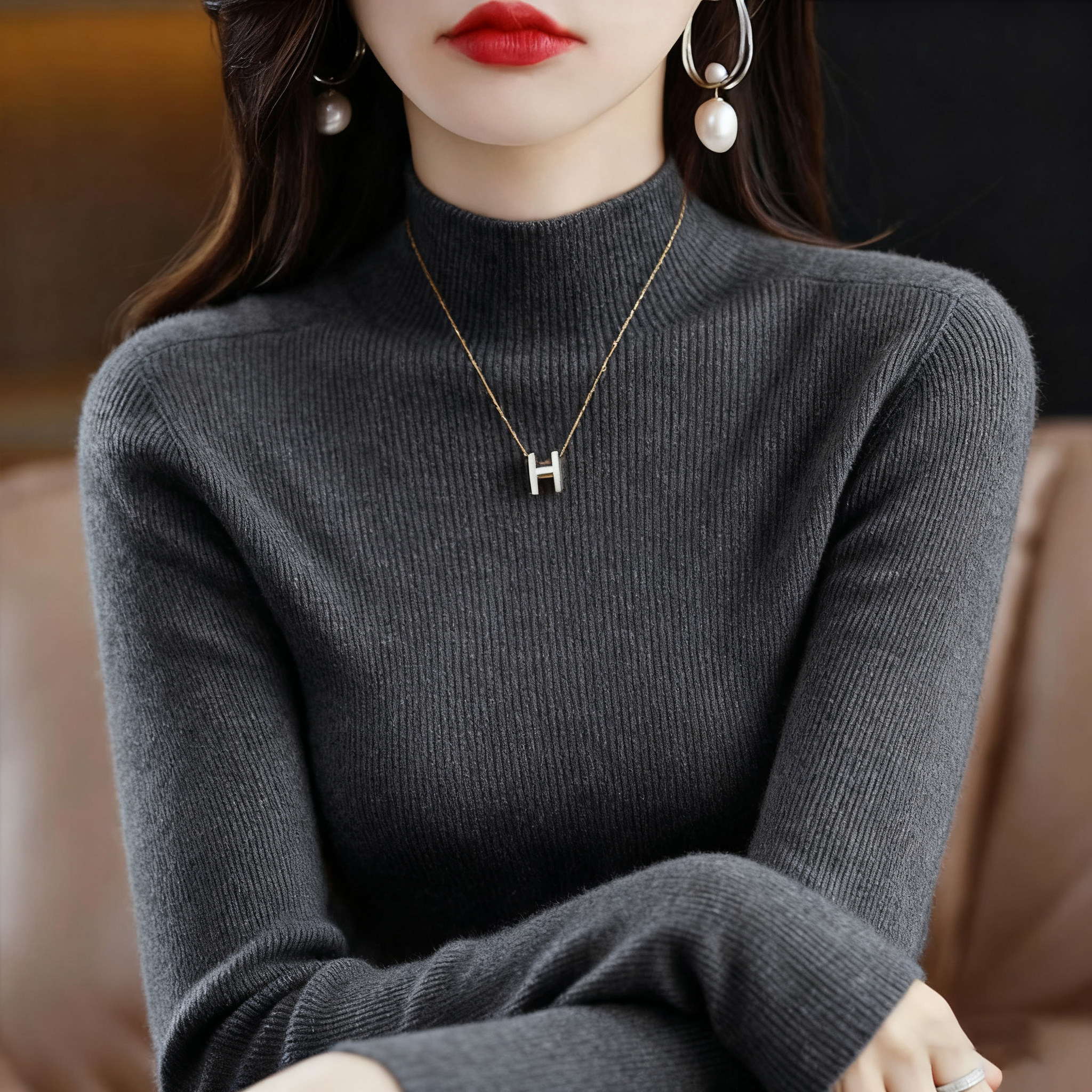 - 针织半高领女打底