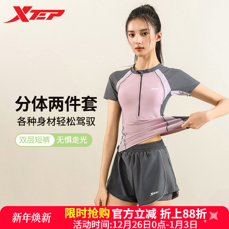 特步泳衣女款分体式温泉保守微胖女孩显瘦平角运动游泳装2025新款