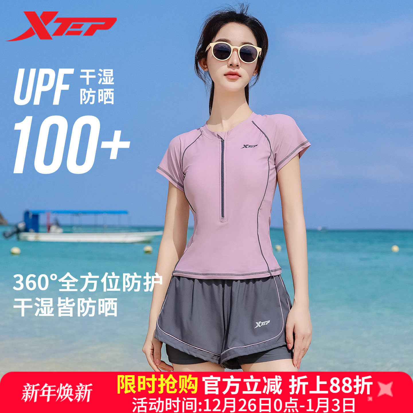 特步泳衣女2025新款分体保守女孩遮肚显瘦平角运动海边度假游泳装