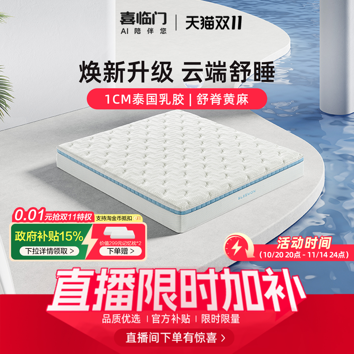 【店播专享】喜临门云朗pro床垫席梦思舒脊黄麻乳胶独袋弹簧床垫