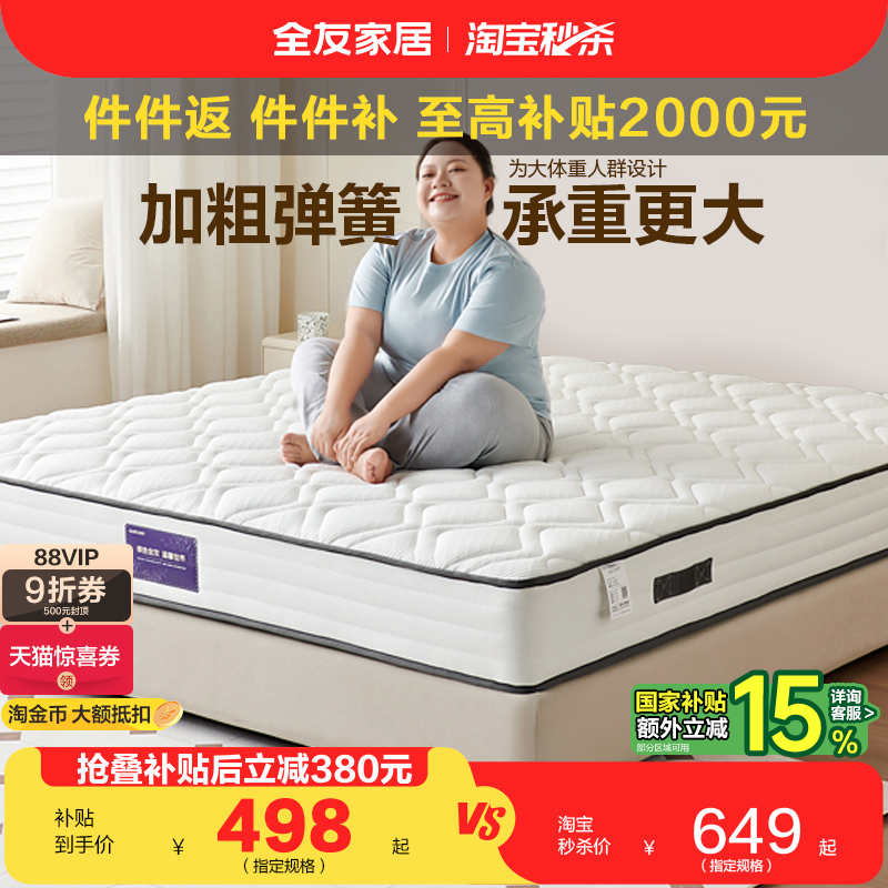 全友家居席梦思床垫硬垫子家用卧室双人2米乘2米2床垫子180x200