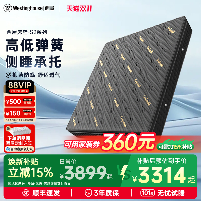政府补贴西屋床垫S2Plus乳胶弹簧卧室家用成人护腰加硬席梦思床垫