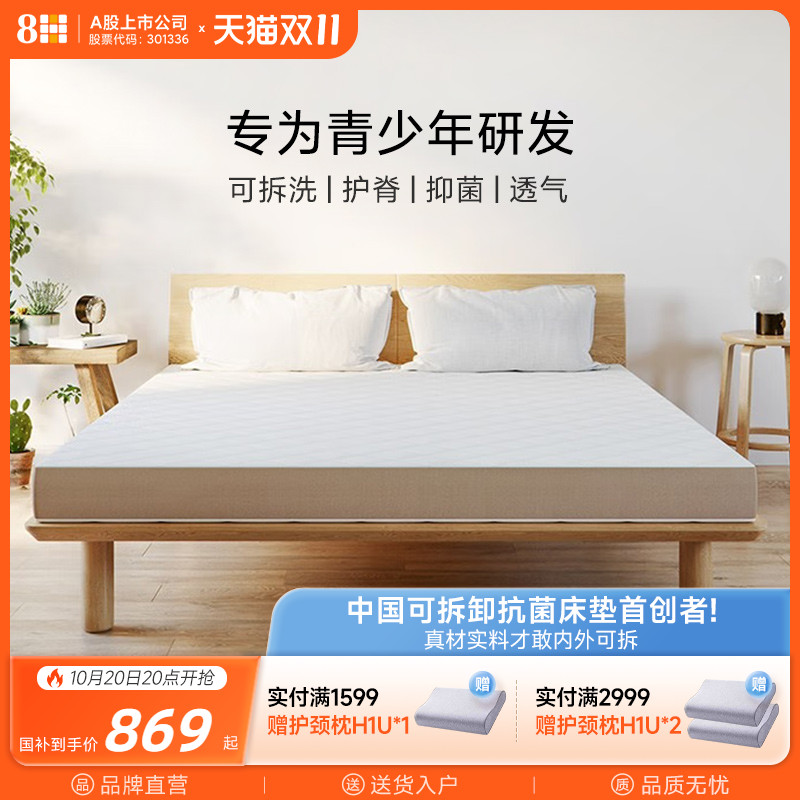 8H青少年健康护脊床垫1.5m黄麻偏硬独立袋装弹簧席梦思床垫12cm