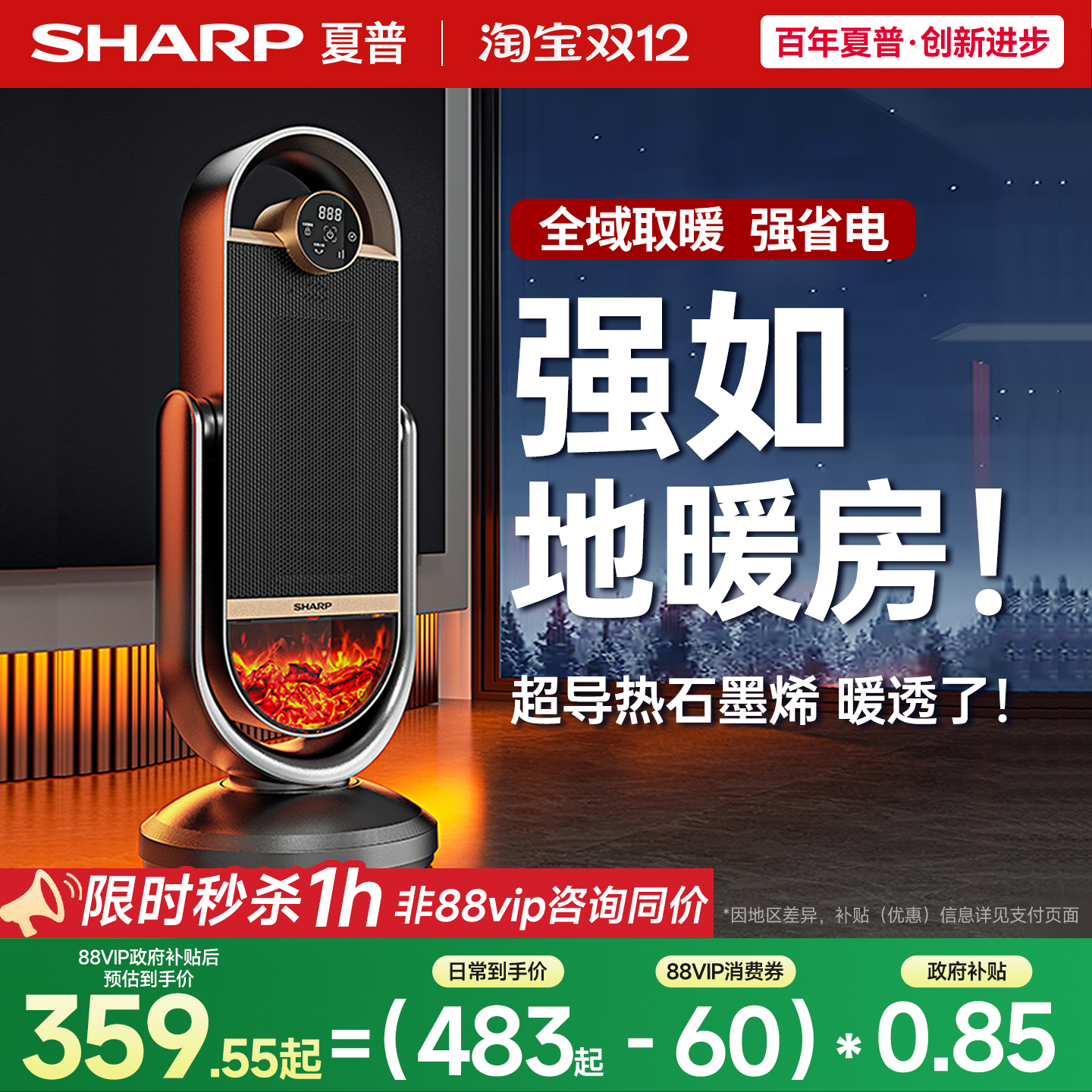 夏普暖立方暖风机家用取暖器节能省电暖气热风机取暖神器2025新款