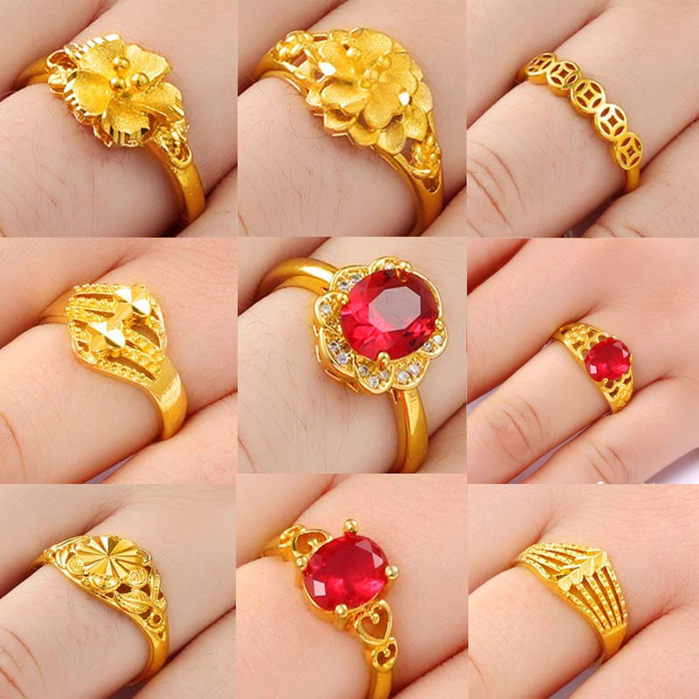 越南沙金古法戒指男女正品999镀纯金色仿真假黄金结婚指环首饰品