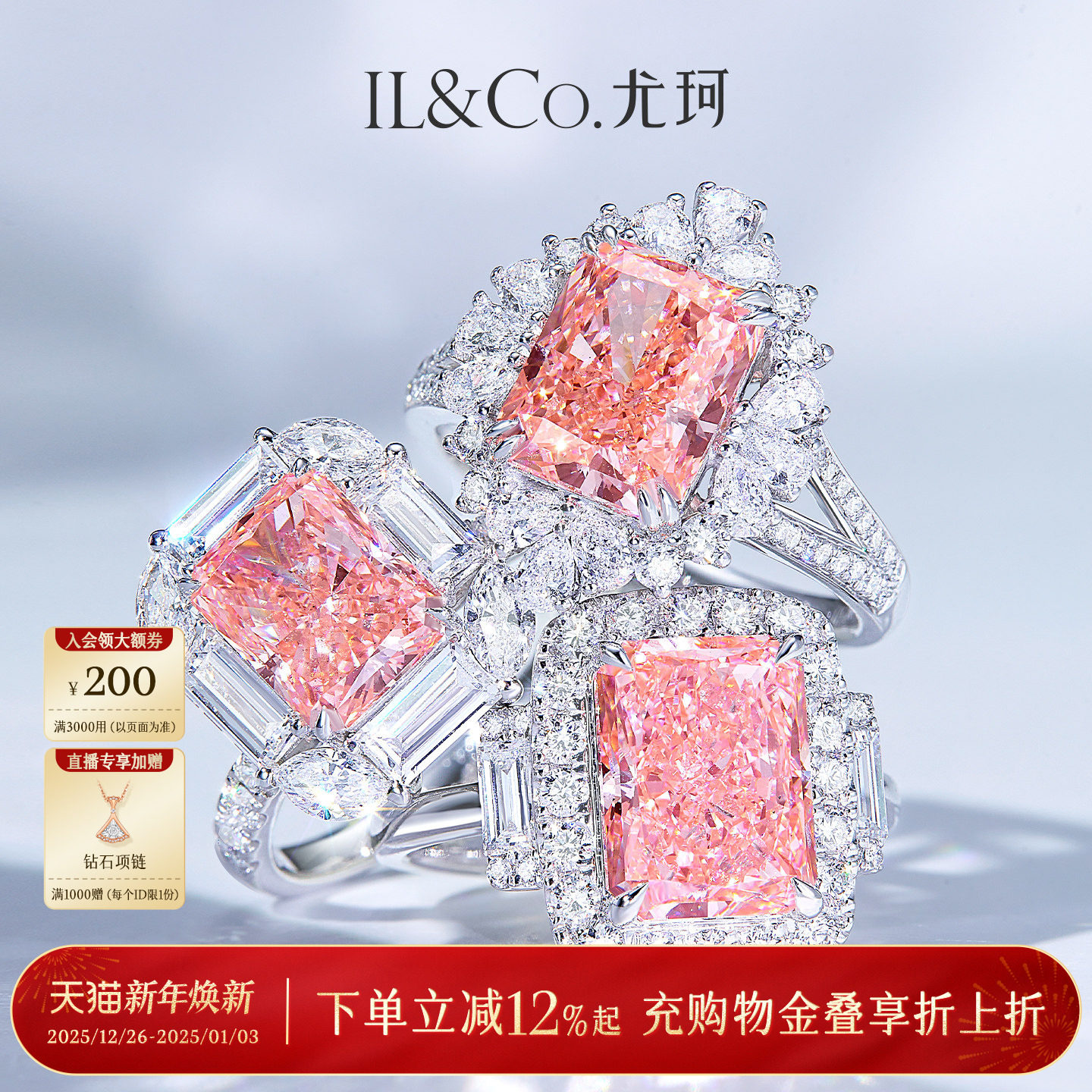 ILCO尤珂 铂金Pt950钻石戒指培育粉钻彩钻镶嵌大克拉求婚结婚钻戒