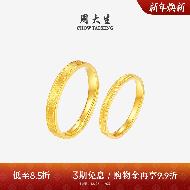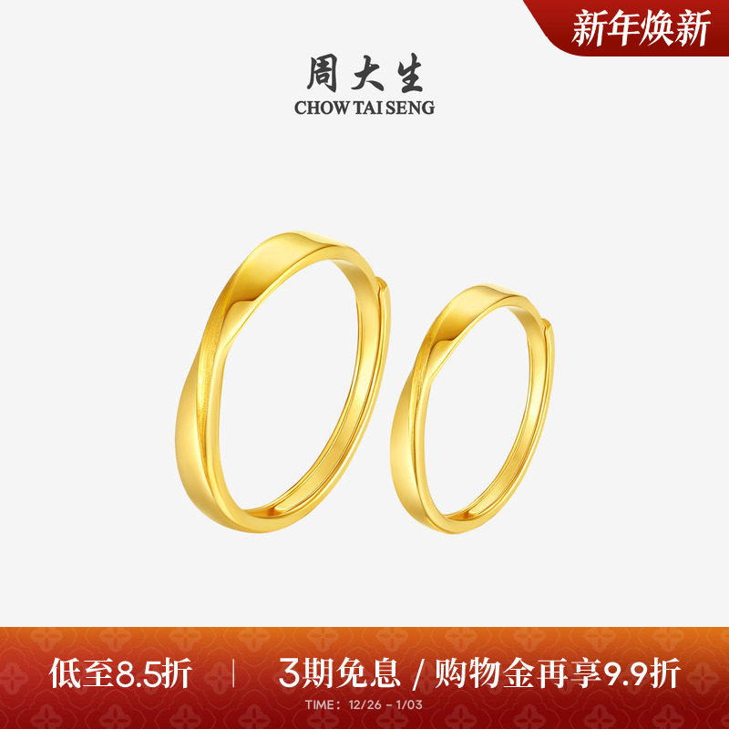 周大生黄金戒指莫比乌斯环足金情侣对戒结婚手饰送男女友生日礼物