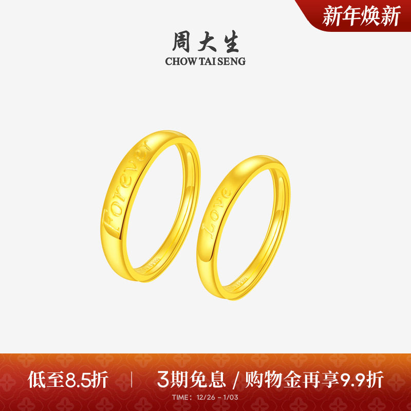 周大生黄金戒指情侣对戒足金love手饰结婚订婚生日礼物送男女朋友