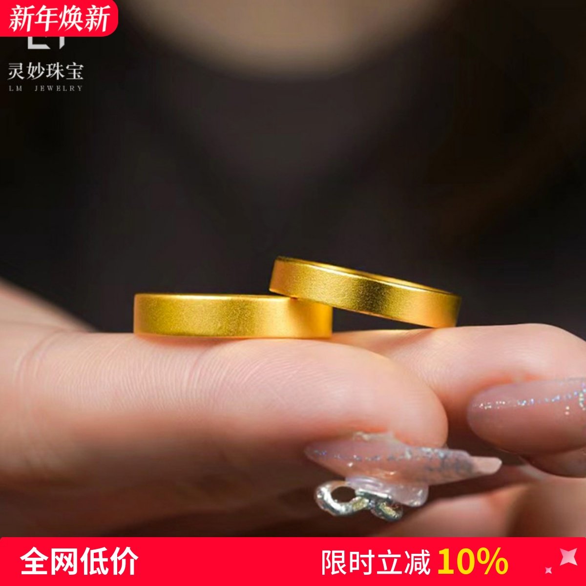 金店同款古法沙金999素圈平安无事素圈戒指男女款对戒结婚素圈方