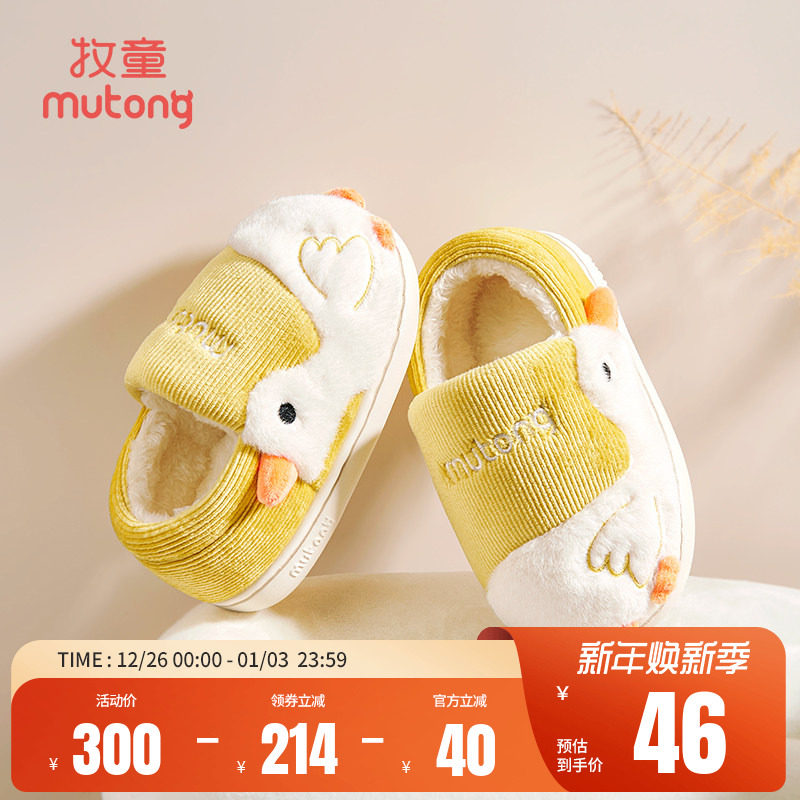 牧童宝宝室内拖鞋加绒保暖儿童家居鞋男童冬季软底小鸭子棉拖鞋女