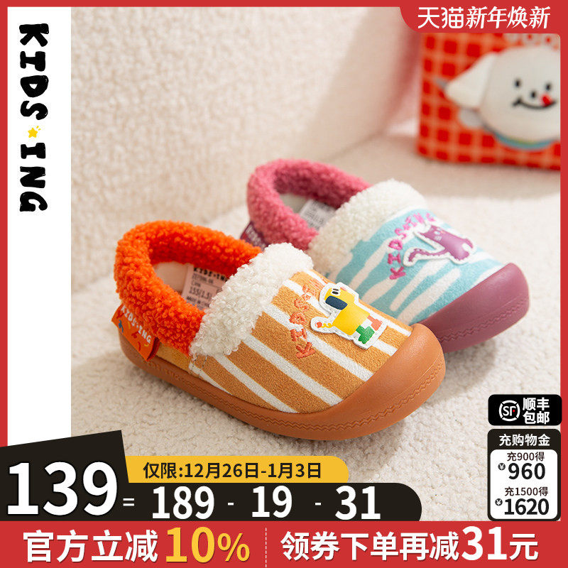 kidsing可迪星宝宝棉拖鞋秋冬男女小童儿童室内居家软底防滑童鞋