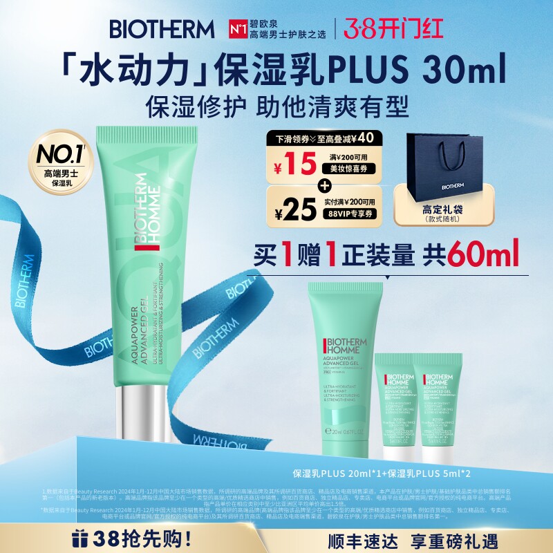 【38抢先购】碧欧泉水动力随行套装男士保湿乳PLUS30ml补水