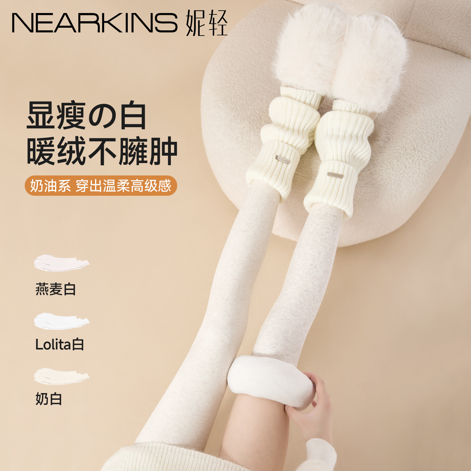 爱上女足角秋冬加绒白色连裤袜女外穿燕麦打底裤袜保暖显瘦米白色