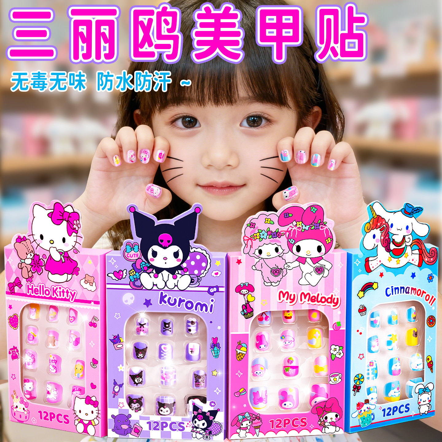 2025新款库洛米儿童指甲贴女孩3到6岁创意可爱高颜值美乐蒂卡通自粘穿戴美甲贴纸装饰小图案防水无毒无味玩具