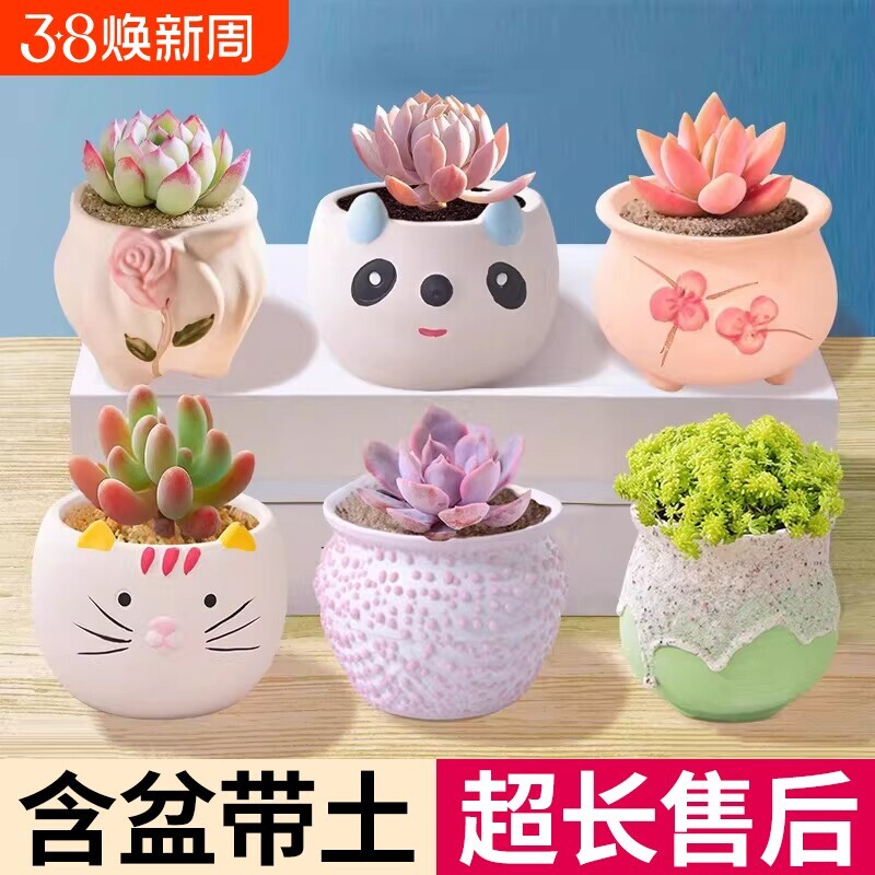 多肉带盆桌面小盆栽办公室绿植仙人球稀罕植物花室内幼儿园仙人掌