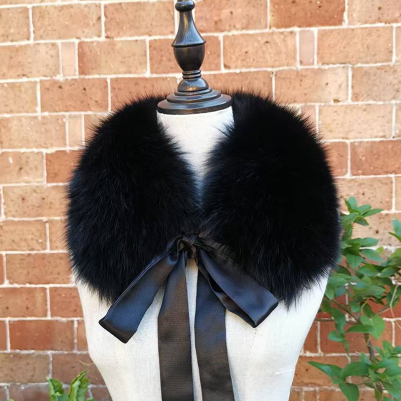 新中式狐狸毛围巾丝带款毛领子皮草围脖韩版冬季女款百搭围巾包邮