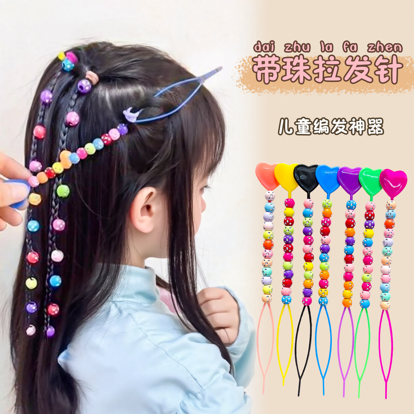 儿童编发工具拉发器女孩带彩珠拉发针盘发器不伤发不扯发女童专用
