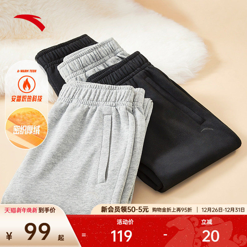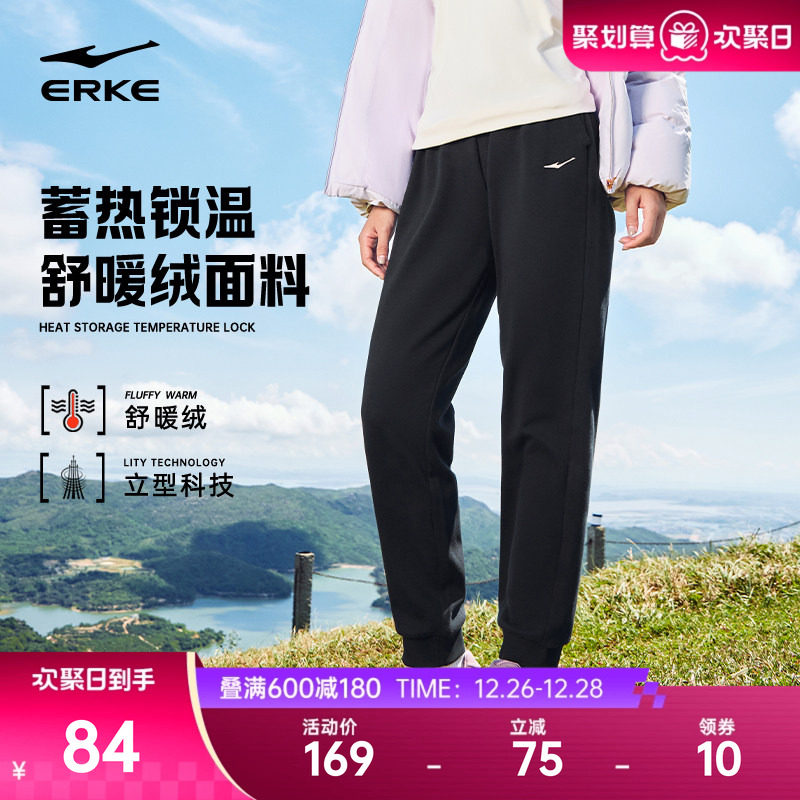 鸿星尔克运动裤女冬季新款女款加厚卫裤黑色长裤女士加绒裤子女裤
