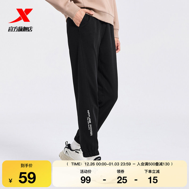 特步女童裤子儿童运动裤2025新款秋季女孩长裤春秋款黑色纯棉卫裤
