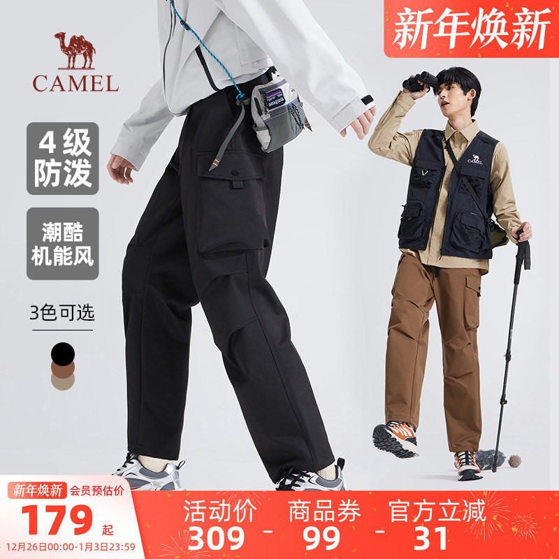 骆驼男装休闲工装裤男士户外新款秋冬宽松直筒运动防水长裤黑色女