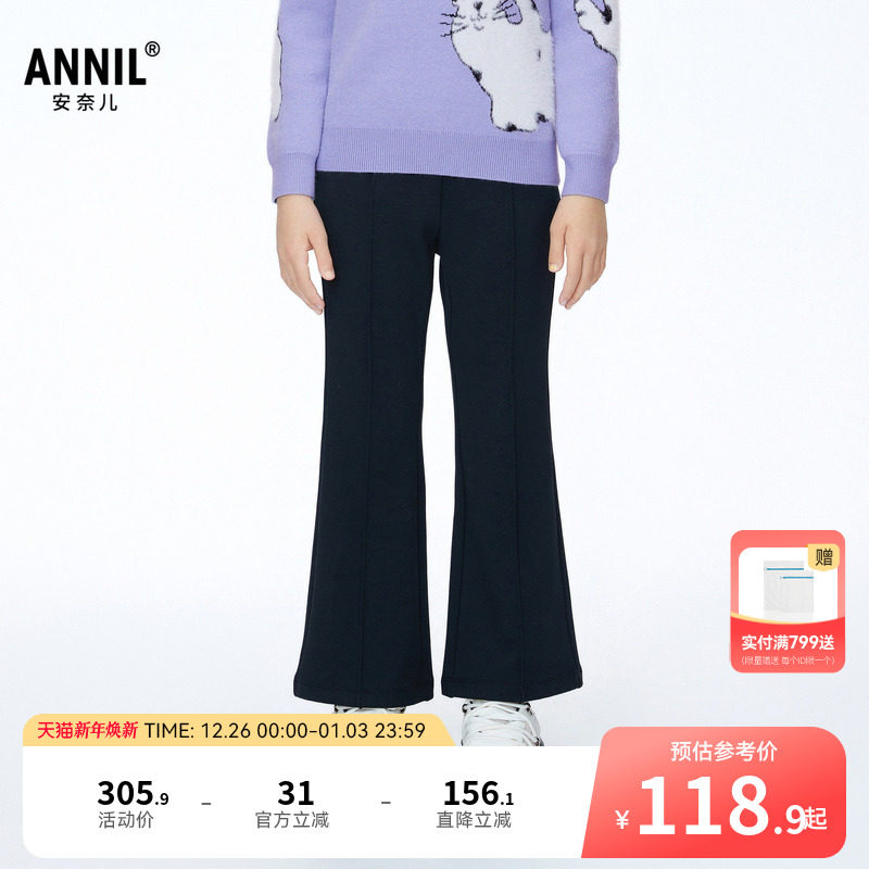 安奈儿童装女童微喇裤子2025冬新款加绒保暖弹力时尚黑色厚款长裤