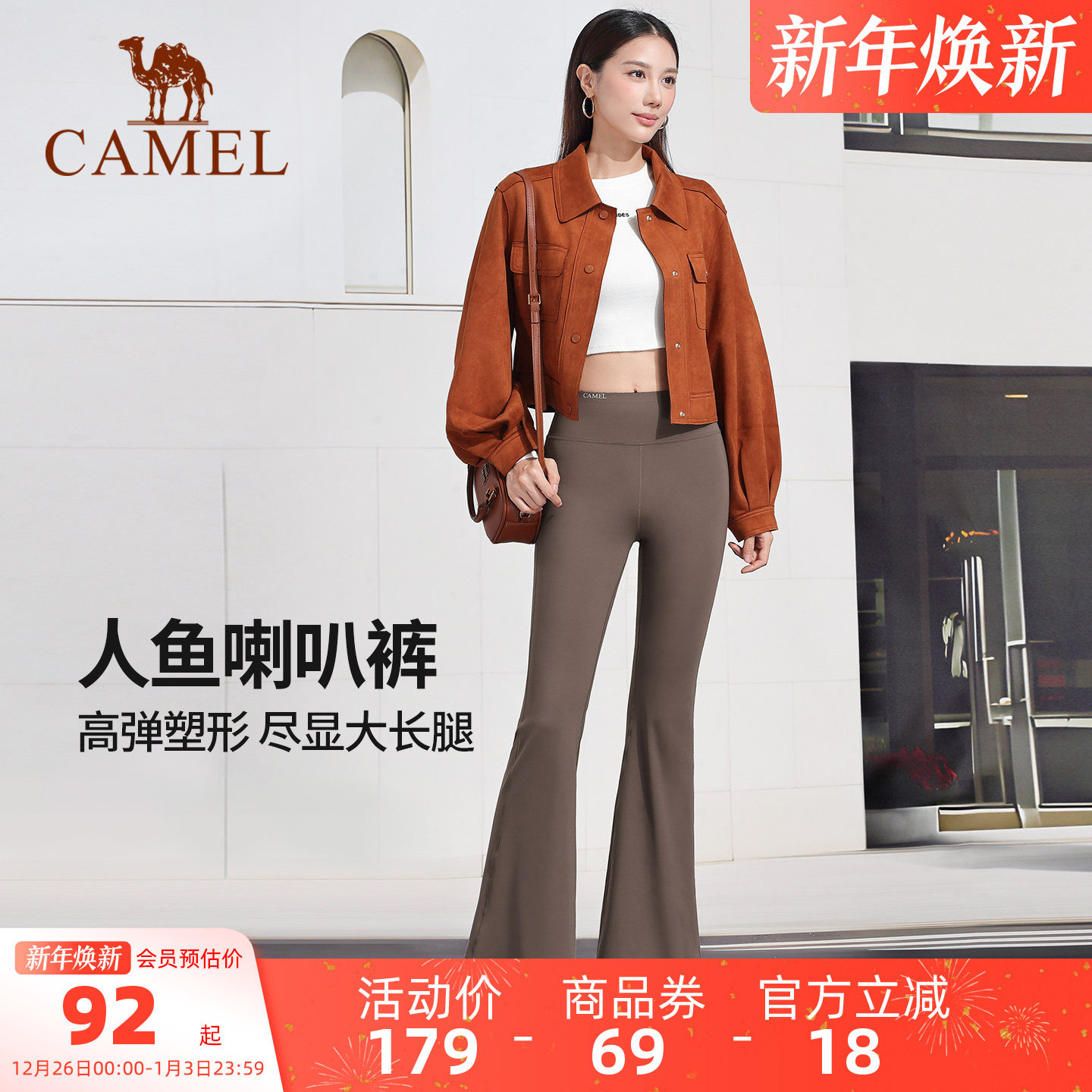 骆驼微喇叭瑜伽裤女款秋冬黑色高腰显瘦防晒外穿棕色修身休闲长裤