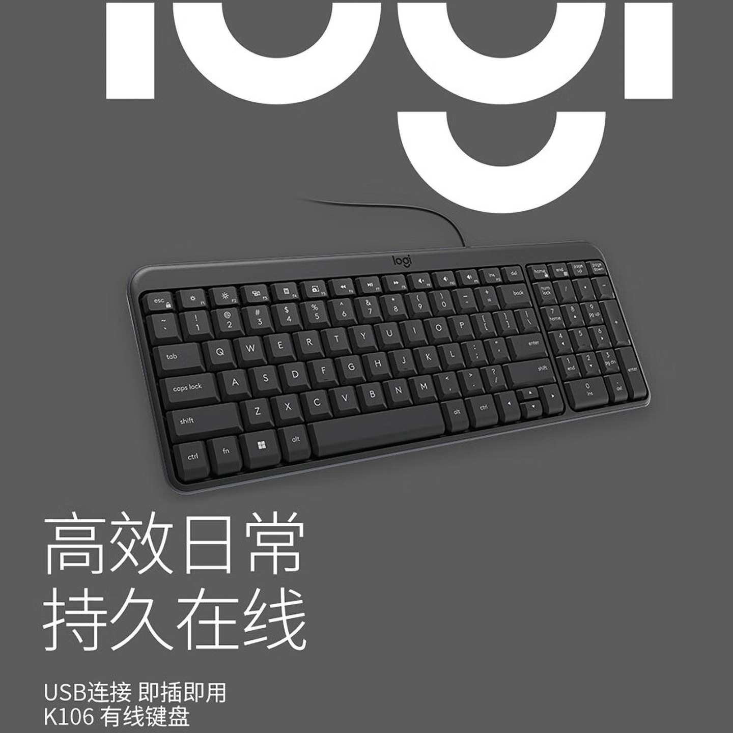 罗技(Logitech)K106 键盘 有线键盘 办公键盘 紧凑型 黑色