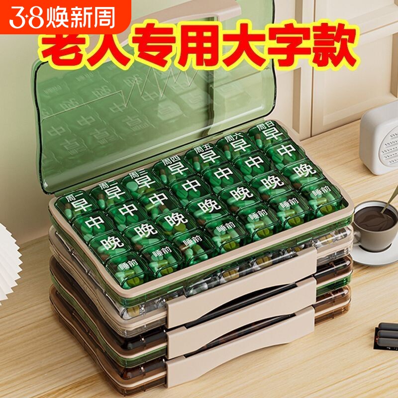 老年人分药盒一周七天便携药品分装盒吃药提醒一日三餐健忘小药盒
