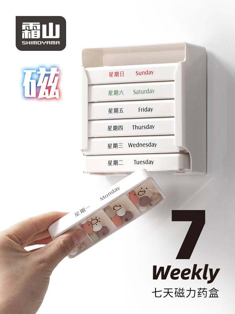霜山磁吸7天便携药盒28格装药小药箱老人随身药片药丸药物分装盒