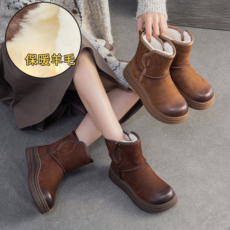 靴轻奢杰骤通勤头层牛皮2025冬季新款厚底羊毛雪地保暖复古风女鞋