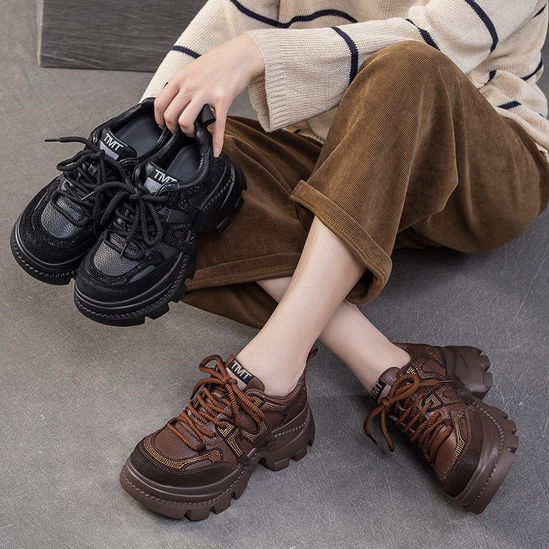 JWNM2025秋冬新款高帮厚底增高百搭英伦风头层牛皮时尚复古风女鞋
