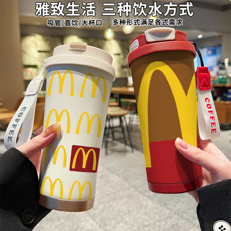 M记创意个性食品级保温杯高颜值吸管水杯子上学女生便携316水壶男